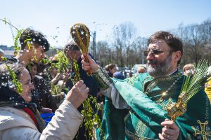 O Duminică frumoasă și caldă mângâie sufletele celor veniți la Sfânta Liturghie pentru a-L întâmpina pe Domnul. Creștinii aduc ramuri de salcie spre a fi sfințite si mai apoi duse în fiecare casă, ca simbol al Împărăției celei noi, al cărei Împărat nu vine să revendice vreun tron, ci ne deschide Raiul și ne înconjoară cu iubire. Salcia imită gestul plecării smerite în fața Domnului, care a învins păcatul.